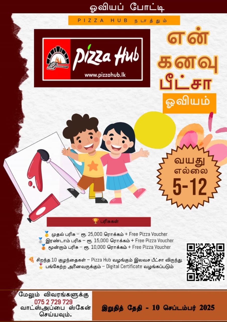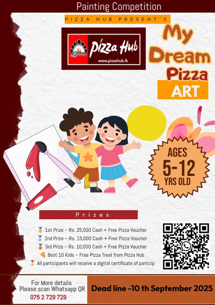 Show Sri Lanka your child’s My Dream Pizza art. Winners get cash prizes, free pizza vouchers, certificates, and features at PizzaHub.